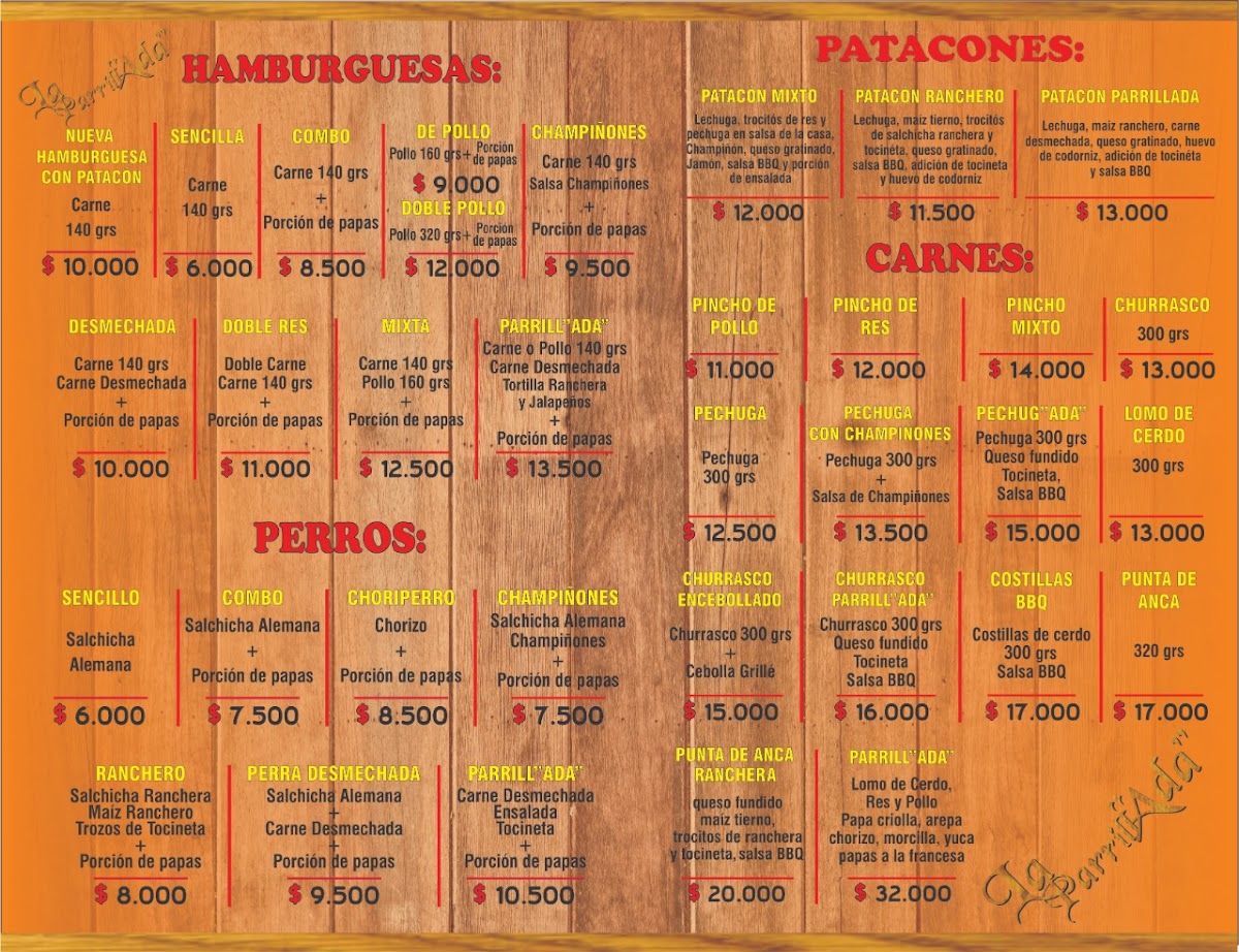 La Parrillada Menu